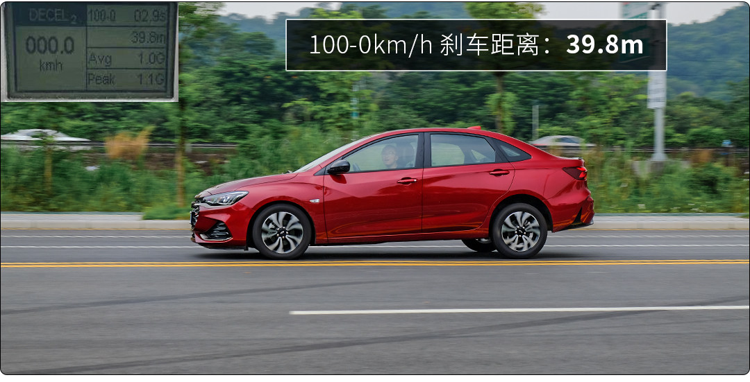 刹车成绩中规中矩,刹车姿态点头不严重,悬架车身刚性不错,刹车姿态很稳,急刹方向不会左右摆,刹车线性而且扎实,配备的固特异安乘系列是偏耐用和节油,也有一部分原因是气温影响,所以测试成绩没太大惊喜。