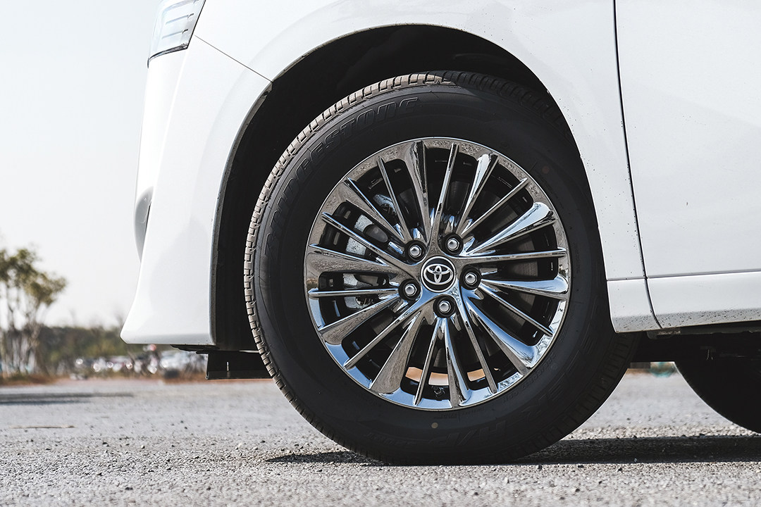虽然17英寸的轮毂看起来略显小气,但与之匹配的高扁平比轮胎却有着更好的舒适性表现;在视觉感受和舒适体验两者之间,威尔法当然选择了后者。