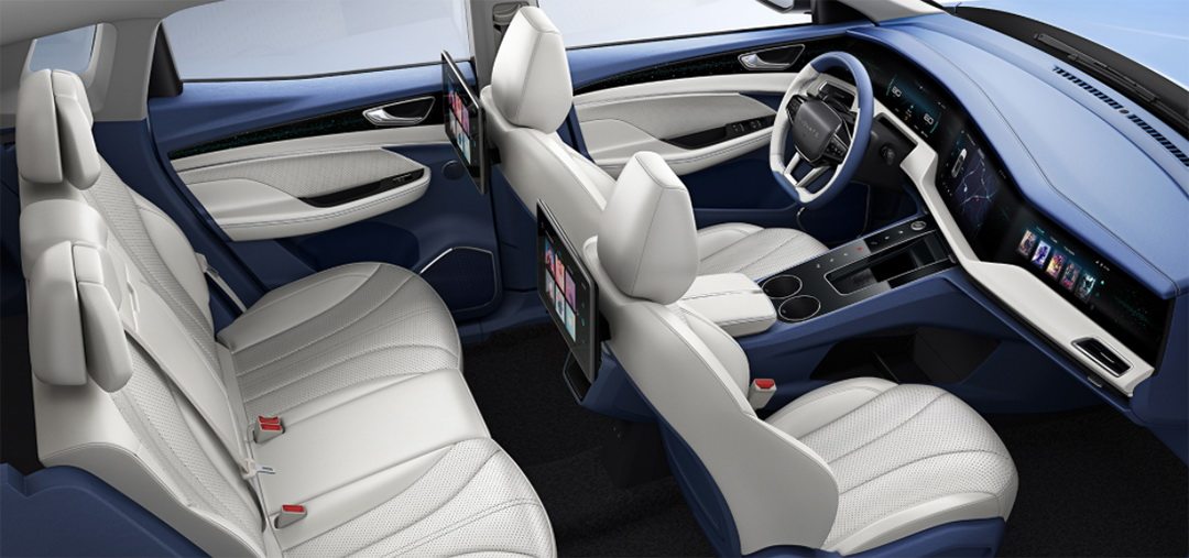 车内四屏联动,由两套系统两套芯片驱动,其中仪表盘和档杆上方的屏幕由德州仪器J6芯片和Linux系统驱动,中控屏和副驾驶屏幕则是由高通骁龙820A芯片和安卓系统驱动。之所以分两套芯片和系统驱动,主要还是防止系统死机,提高安全性。