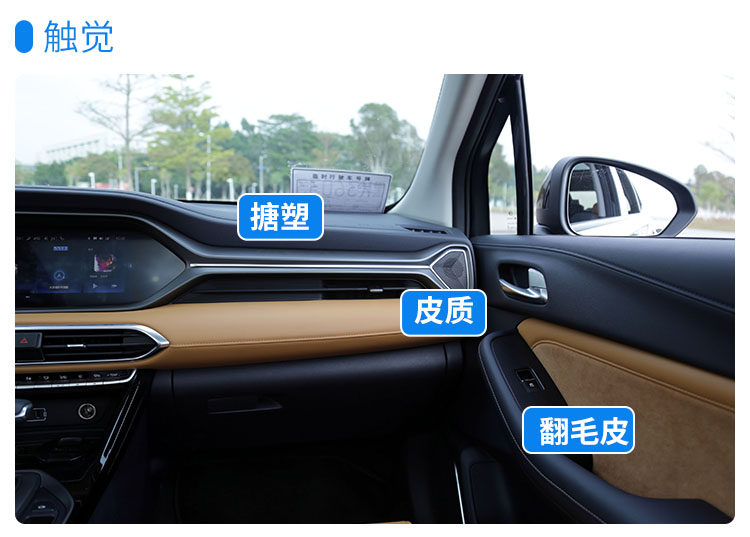 在材质的使用上,中控台上方使用了软质搪塑包裹,中间部位和车门版处使用皮质和翻毛皮包裹,在带来不错视觉效果的同时也可以进一步提升车内档次感,看的出来GS4在这方面还是下了很多功夫的。