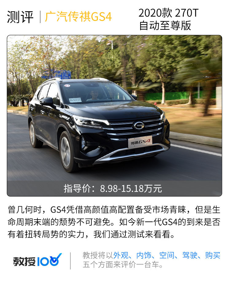 【教授100】更上一层楼?测试广汽传祺GS4 2020款自动至尊版