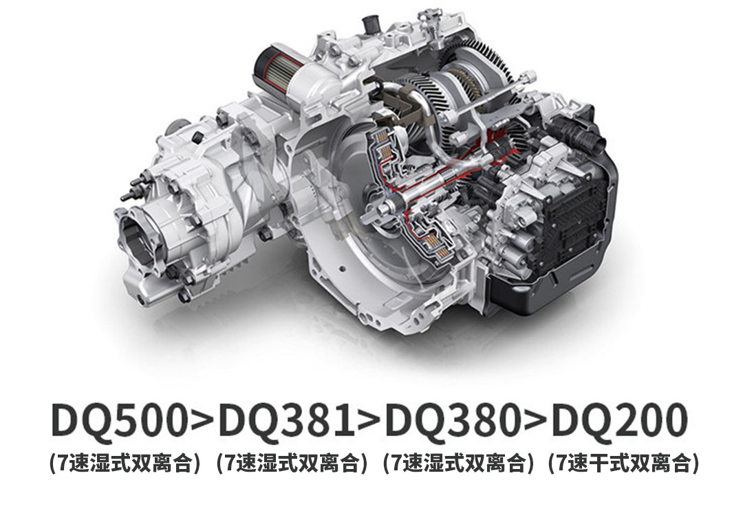 首先现在大众的1.2T和1.4T发动机大部分都是匹配代号为DQ200的7速干式双离合变速箱,途观丝路版是个例外,1.4T匹配的是DQ250的6速湿式双离合,探岳的1.4T匹配了代号DQ381的7速湿式双离合变速箱;而2.0T发动机基本是匹配DQ380、DQ381和DQ500的7速湿式双离合变速箱。