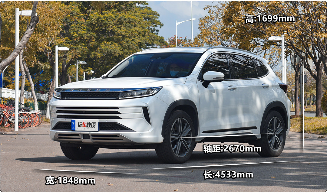 星途LX的车身长宽高为4533*1848*1699mm,轴距为2670mm。它的车身高度比较突出,车身侧裙的离地高度有近30cm。据教授目测,它的最小离地间隙有20cm以上,具备不错的通过性。