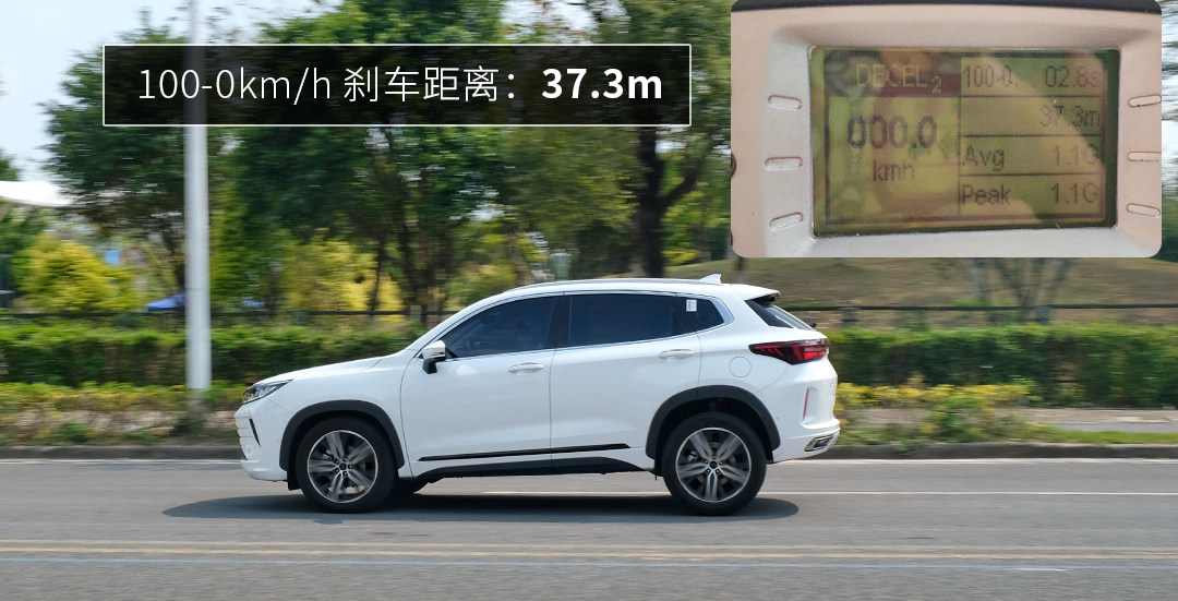 星途LX的刹车成绩比较优异,一方面是因为星途LX车身整备质量为1476kg,不到1.5吨,另一方面配备225胎宽的轮胎抓地力不错。
