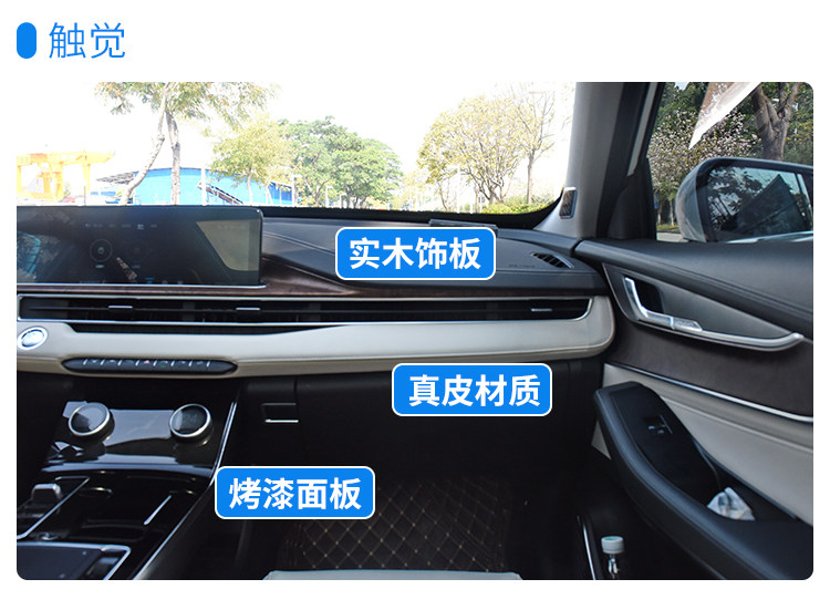 内饰用料丰富,搭配得也很好。唯一可以挑刺的地方就是空调的烤漆面板,很容易留下细小的刮痕。