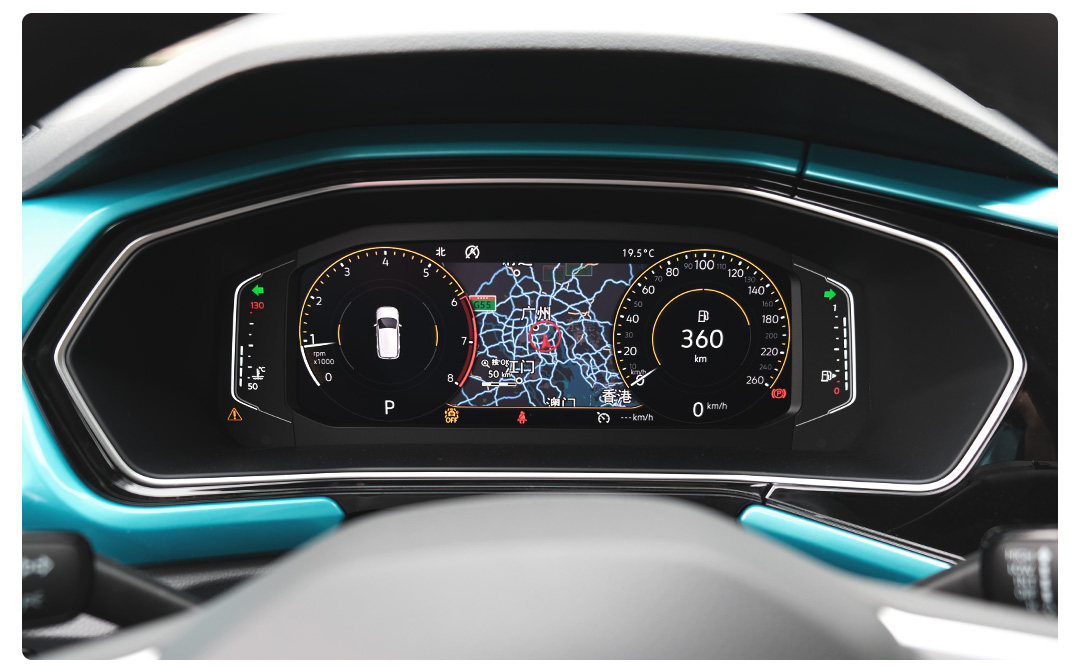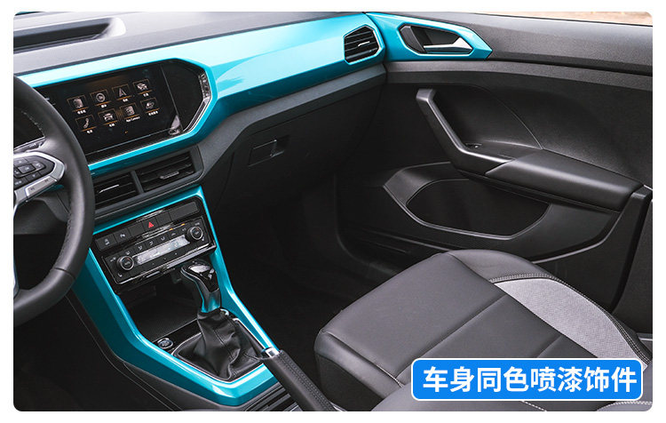 打开车门,探影的内饰设计甚至比外观更加惊艳;T形中控布局并没有什么新意,但大众通过大量不规则多边形元素以及多面体设计让内饰获得了强烈的雕塑感;与车身同色的涂漆饰板出现在中控台、门把手、方向盘等重点区域,不仅增强了内饰层次感,靓丽的青蓝色饰件与黑色内饰的碰撞也带来了强烈的视觉冲击。