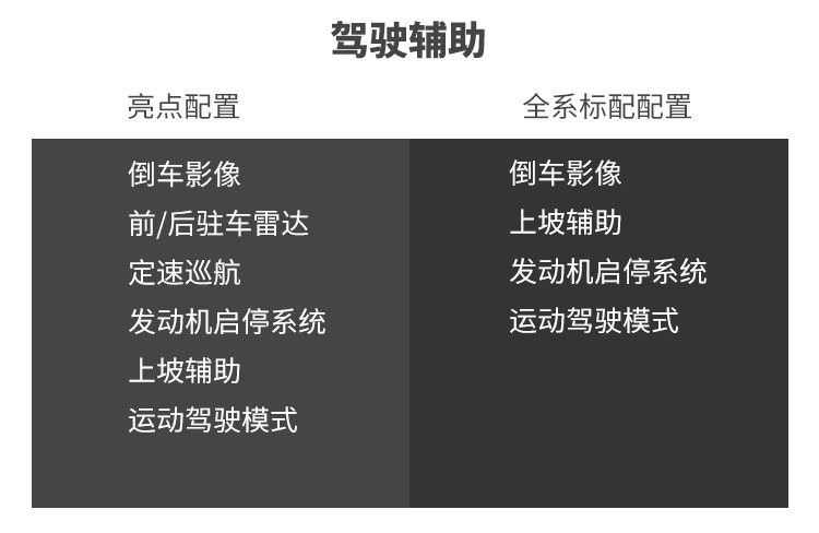 在驾驶辅助配置部分,探影的表现只是中规中矩,并没有提供诸如ACC自适应巡航、车道偏离预警、360度全景影像等相对新潮的配置;虽然普通倒车影像、定速巡航等传统配置依旧能为驾驶者提供一些辅助,但科技体验就打了折扣。