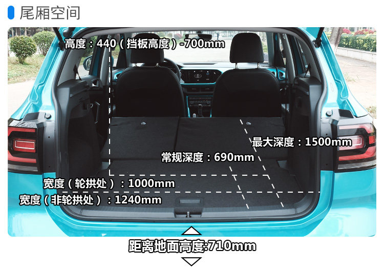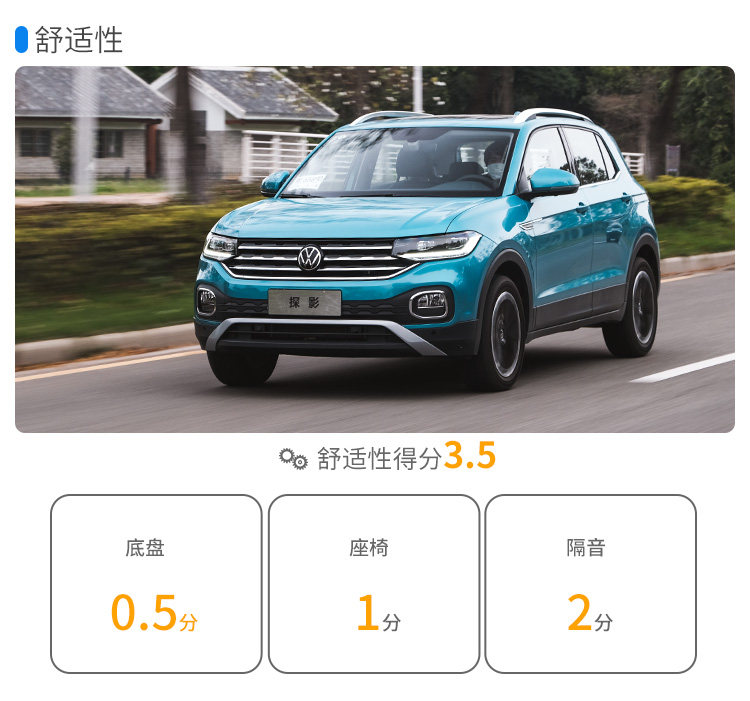 上文曾提到,探影2651mm的轴距在同级合资品牌小型SUV中优势明显,通过实际体验,教授发现大众确实将这个轴距优势转化为更宽敞的乘坐空间;探影的前后排座椅都拥有不错的头部空间,后排腿部空间表现亦超出教授的预期,而且由于后排座椅的坐垫长度达到了500mm,提供了出色的腿部支撑,乘坐舒适性因此得到提升。但是作为一款五座车型,后排中部坐垫稍短,加上地台中部较高的凸起,导致后排座椅中部乘坐体验较差。