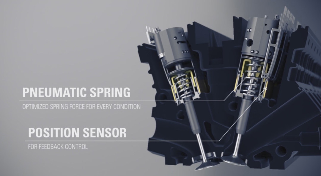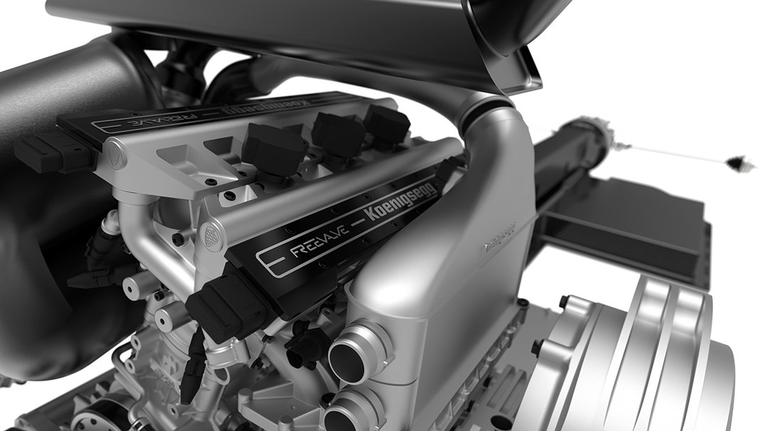 这台发动机采用了科尼塞克的Free Valve技术,传统发动机使用凸轮轴来打开和关闭气门,凸轮只有一个最大升程的时间点,而Free Valve技术使得这台发动机没有凸轮轴,每个气门都有一个单独的执行机构,所以可以通过电脑控制空气执行器完全打开气门,或者让气门打开一定时间。