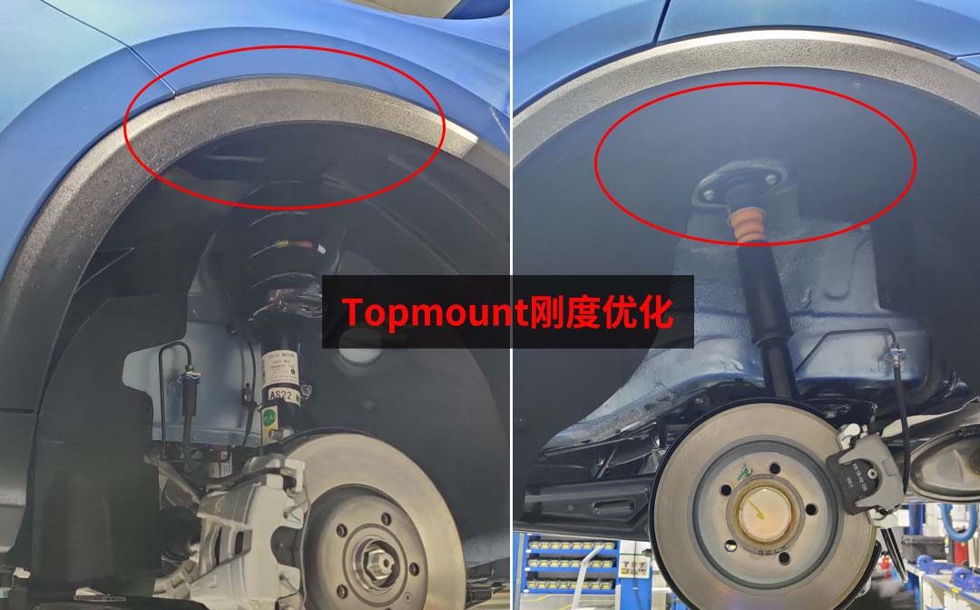 当然,想要让底盘达到理想的状态,光靠精心的调校还不够,过硬的硬件支持也是关键。为此,底盘开发团队在现款RX5底盘的基础上,进行了技术升级,对前/后Topmount、Ride衬套、前辅簧等零部件进行了优化,意在改善冲击,提高舒适性。