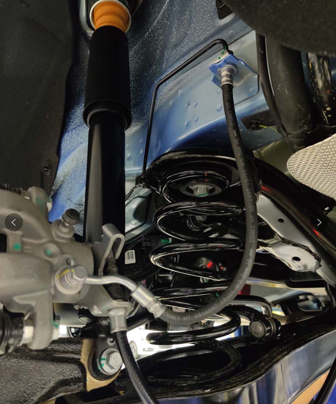 簧筒分离的设计,有利于提升车辆承载能力以及稳定性。其中减震器采用了前倾的布局,能够吸收部分制动和加速时的抖动。