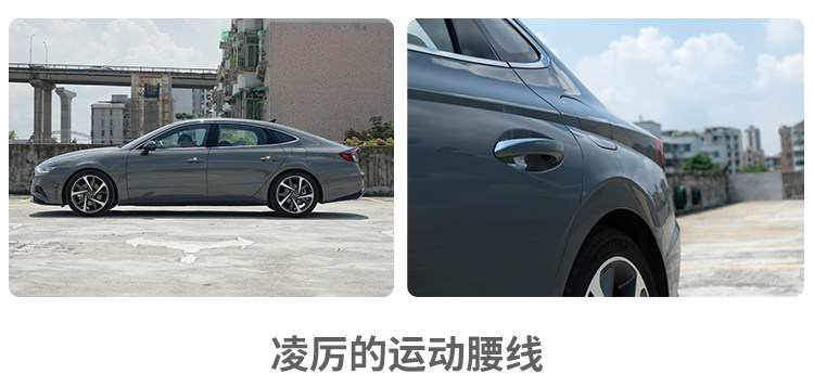 第十代索纳塔高度还原了LeFilRouge概念车的设计,整体设计激进张扬,柔美的曲线和阳刚的折线共同塑造了一种感性与运动并存的美感。