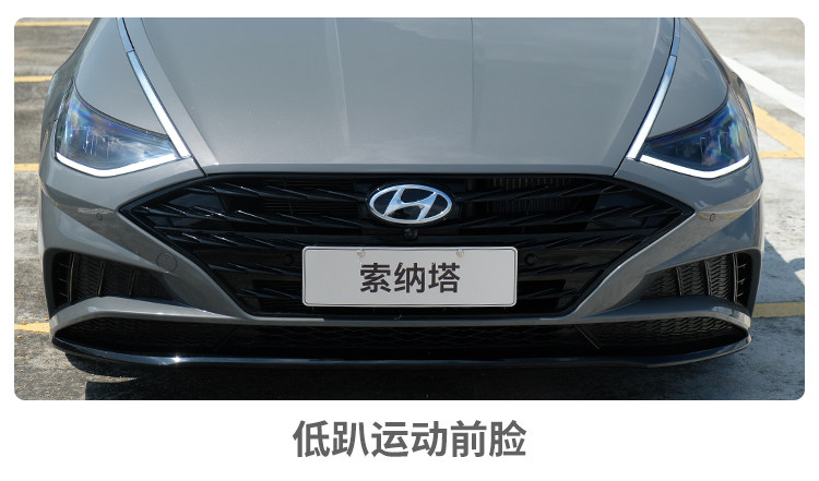 第十代索纳塔的前脸采用超大尺寸的不规则形状,比上一代车型凌厉了不少。超宽的格栅、下潜式的引擎盖将以及向两侧延伸的渐变式日间行车将前脸的运动感塑造得跃然纸上。只要将索纳塔的车身高度降低,在前保险杠上加上空气动力学套件,他就能摇身一变成为一台GT3赛车。