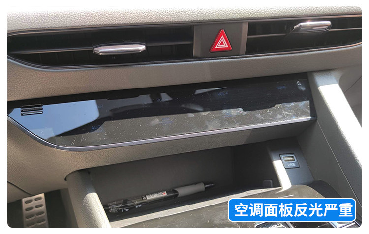 索纳塔的内饰拼接工艺也略有小瑕疵,而且空调面板和双液晶屏的反光问题需要得到现代的重视,其中空调面板在阳光底下是根本看不到按键的。内饰的拼装紧致程度也一般,例如中控台下方的这条缝隙上下并不均匀,让内饰的高级感打了一些折扣。