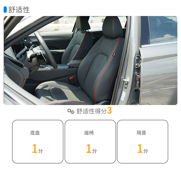 小结:低趴的车身姿态、凌厉的线条组合和层次感十足的尾部设计构成了索纳塔激进运动的外观元素,从设计风格来说,第十代索纳塔的风格更加贴近第八代索纳塔那种不拘一格,突破常规的精神内核。索纳塔的车身喷涂工艺非常不错,但是车身缝隙稍大,这让索纳塔在后面的噪音测试中吃了亏。