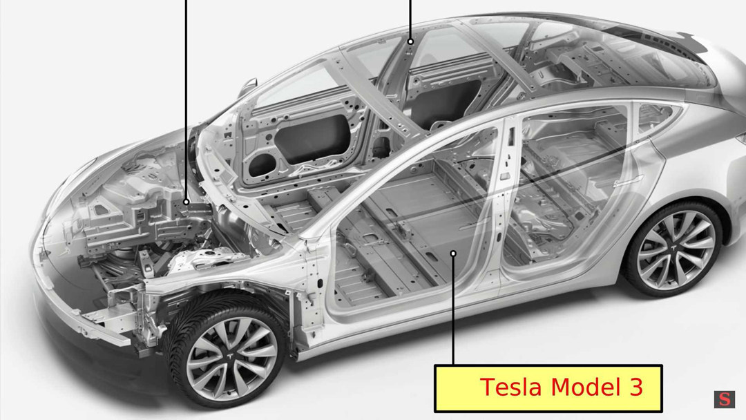 Model S和Model X由于定位的原因,使用全铝车身,由于这两辆车的售价较高,可以更好平衡由于工艺而产生的高昂成本。来到Model 3后,由于车辆本身定价不高,如果使用全铝车身,会让车辆的单车成本大大提升,所以在Model 3上,特斯拉使用钢铝混合的车身结构。