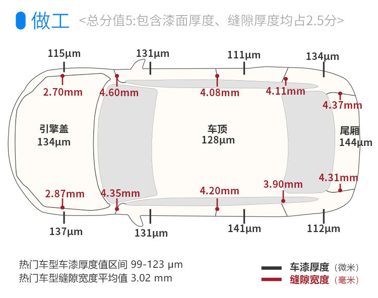 VV7的车漆厚度还是很让人满意的,你别看它的车身间隙好像很大,不过中间打了厚厚的胶,这也是豪车的做法,VV7也很厚道了。