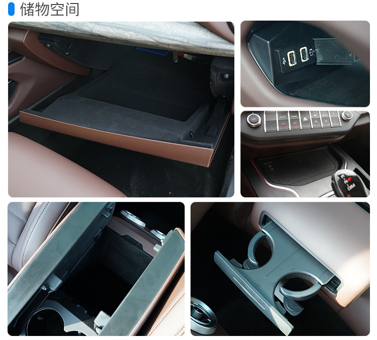VV7全车有15个储物槽,手套箱、中控扶手箱的容积都比较大,除了无线充电位置外,换挡位置下方还采用了镂空的设计,除了有USB接口外,还可以储存物品,很方便。