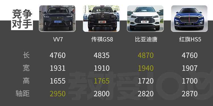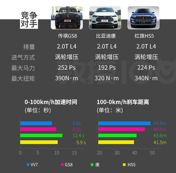 VV7的参数虽然不是最大的,但是它的加速时间却是最快的,从加速时间上也可以看到这是一款偏运动的SUV。