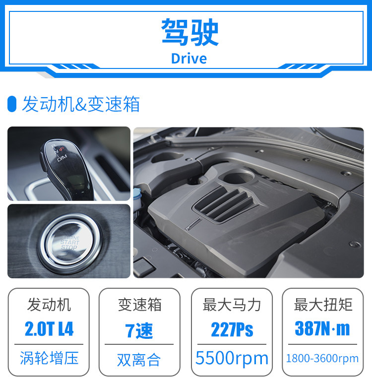 VV7的2.0T涡轮增压发动机在参数上和国际水平的2.0T发动机平齐,7速双离合变速箱的出货量也达到了千万台以上,所以稳定性也不用担心。科技版开起来跟其他版本会有差别吗?接着往下看。