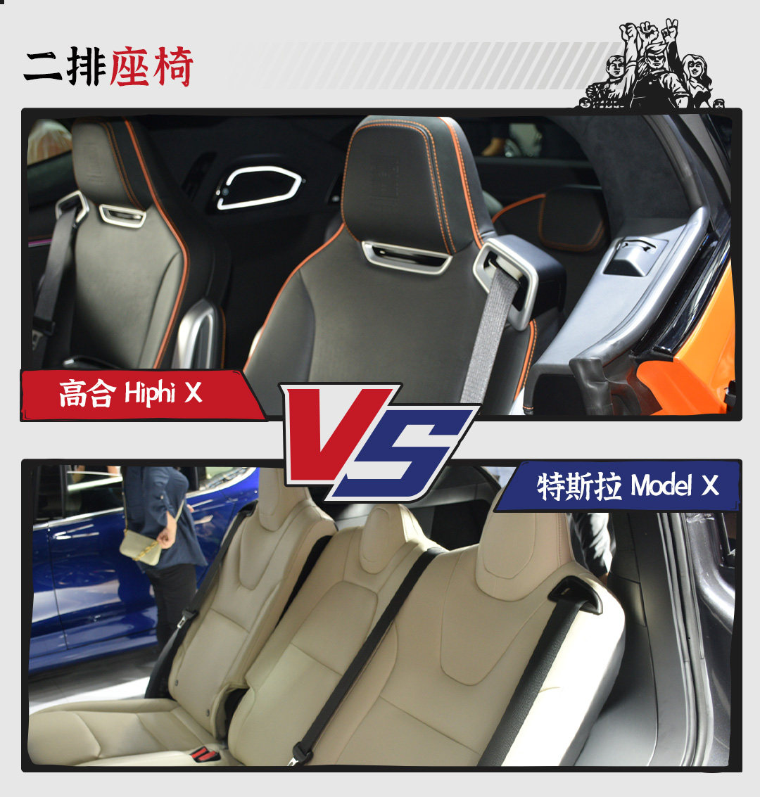 座椅设计也是两车的一大亮点,高合Hiphi X有2+2和2+2+2三种布局,特斯拉Model X是2+2+2或者2+3+2布局,用户可根据需求选装,高合是固定形式,没那么灵活。