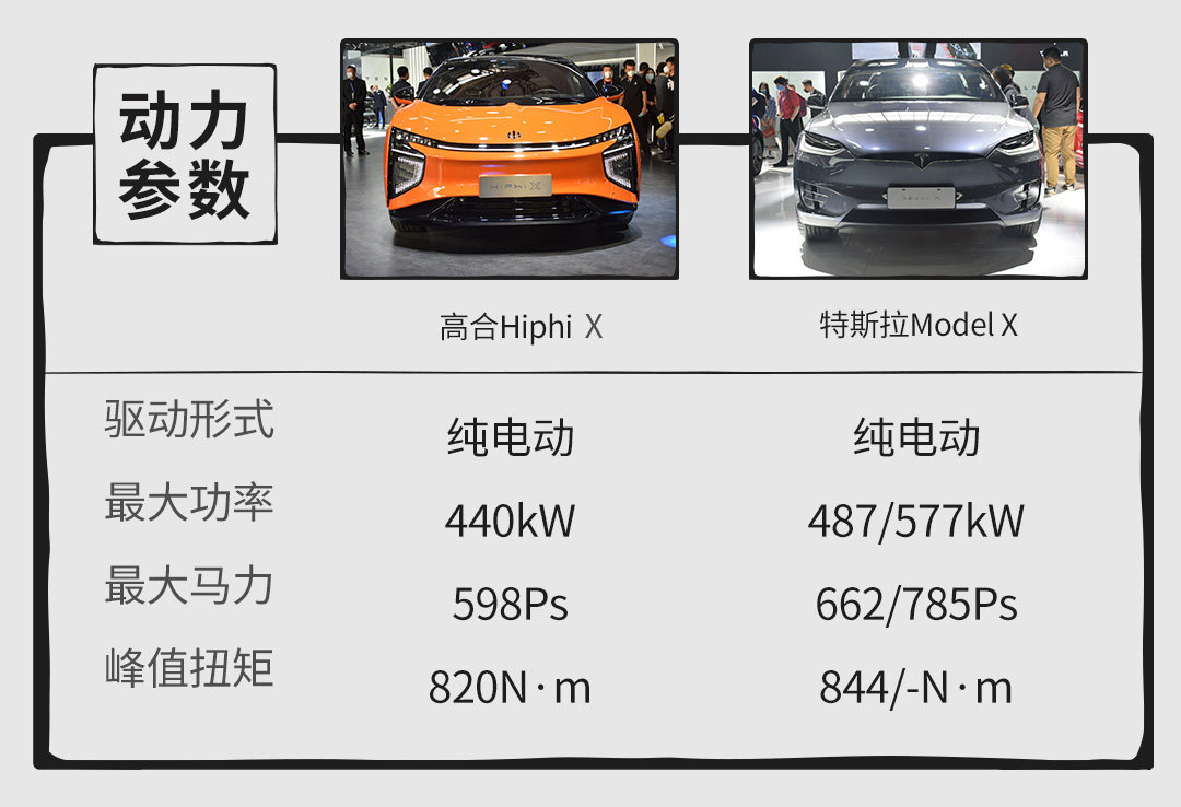 再看特斯拉Model X,虽然也是搭载双电机,最大功率和峰值扭矩更是分别高达487kW、844N·m,但它的0-100km/h的加速成绩是4.6s,比高合Hiphi X要慢将近1s。