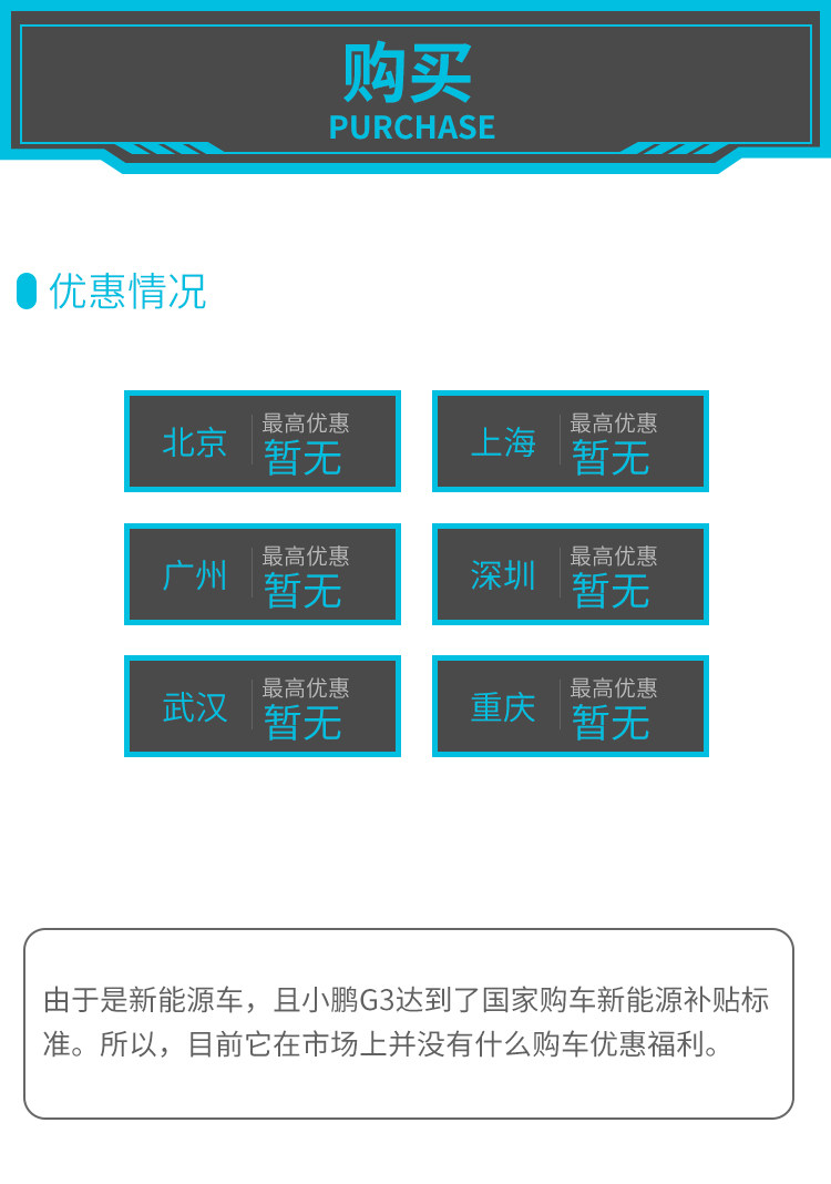 小结:一直以来,小鹏G3在配置上的表现都是可圈可点。要是主动安全系统能下放至中高配车型,手机无线充电、座椅加热、倒车侧预警系统等一些配置能实现标配那就更好了。