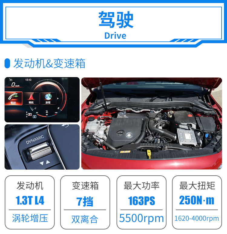 关于第二代GLA的动力系统,相信许多车迷会对它搭载的1.3T涡轮增压发动机发出猛烈吐槽,但是单从动力参数上看,这款基础排量较小的1.3T发动机已经超越了第一代车型搭载的1.6T发动机,163匹马力、250牛·米峰值扭矩虽然称不上动力强劲,但起码对于这一台紧凑型SUV来说是不会显得力不从心的。