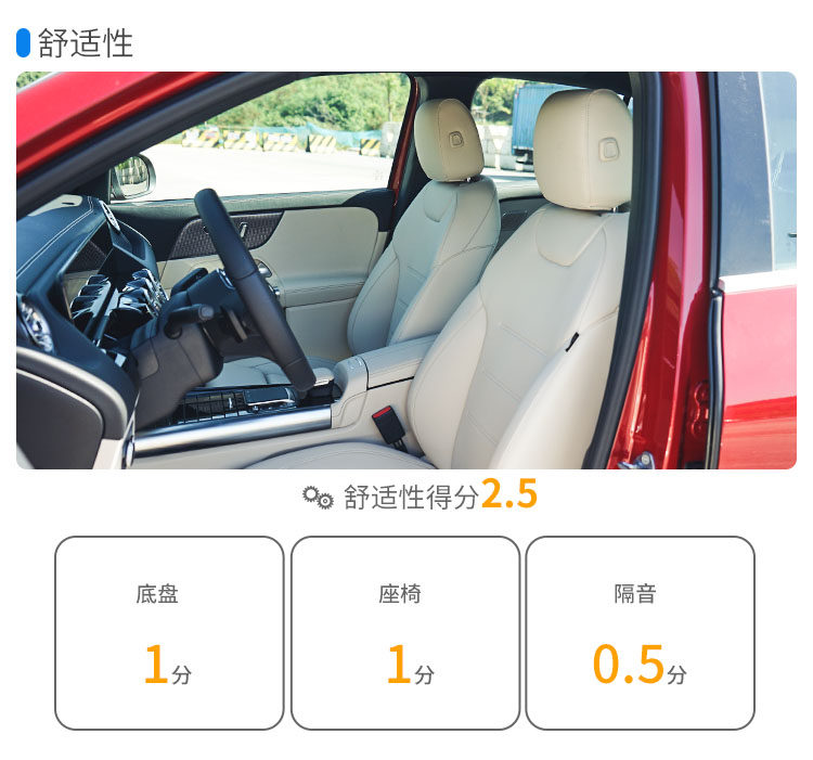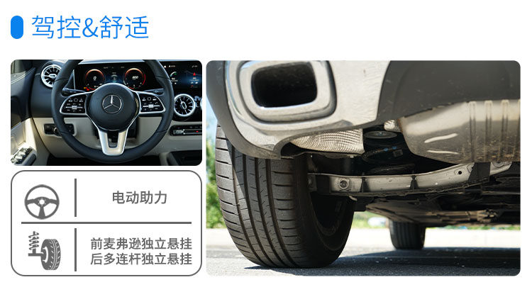 说到舒适性,第二代GLA依旧采用前麦弗逊后多连杆四轮独立悬挂,减震系统对细碎震动的过滤不算到位,路感比较丰富;在面对较大的坑洼时,悬挂系统动作也比较快速、干脆,并未出现明显的弹跳或晃动现象,在高速转弯时车身姿态控制也比较出色。总体来看,第二代GLA在底盘方面采用了比较典型的运动化调校风格,结合精准且富有线性的转向系统,驾驶乐趣乐趣十足,但舒适性欠佳。