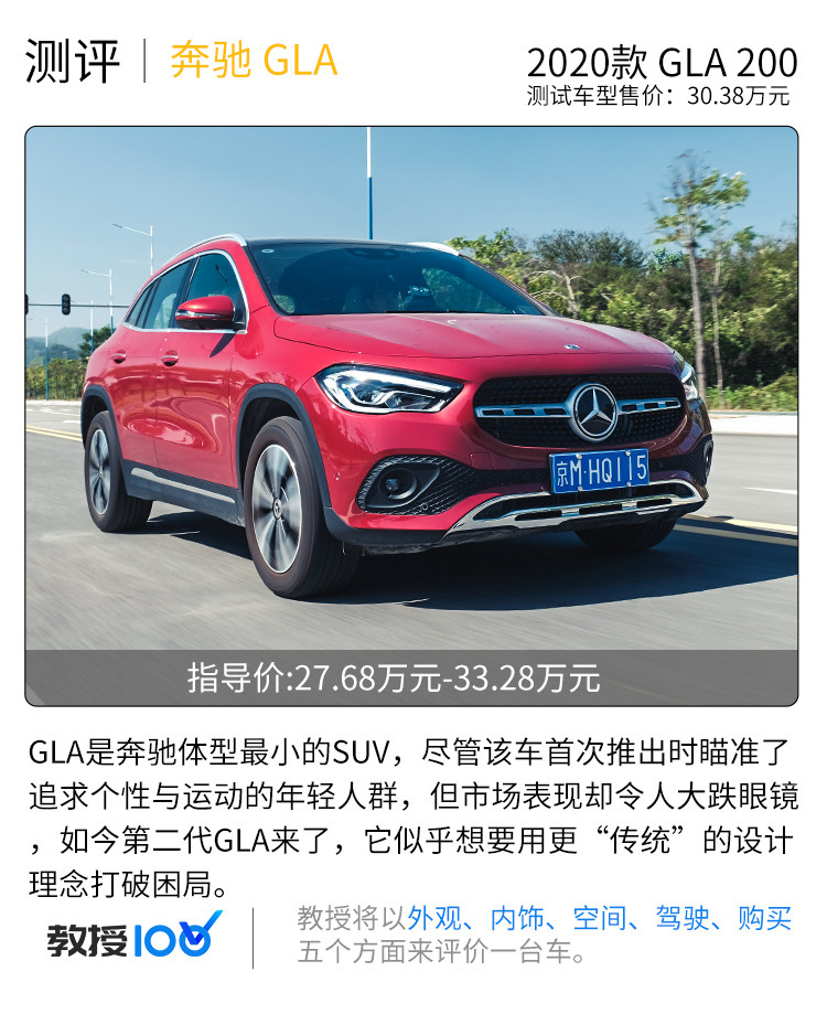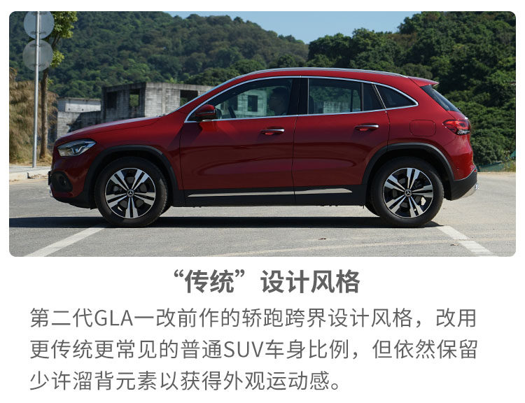 尽管采用了更传统的设计风格,但第二代GLA依旧在整个奔驰SUV家族中展现出突出的个性,无论是外形设计还是内饰设计都散发出较浓烈的前卫、时尚气息。1.3T发动机虽是同级车型中基础排量最小的,动力参数与实际加速性能也稍落后于对手,但结合其运动感强烈的底盘调校,在城市中也能提供很有趣的驾驶体验。因此,如果你需要的一台品牌高档、个性时尚、还能提供一定驾驶乐趣的都市通勤小车,那么奔驰GLA依旧是一个不错的选择。