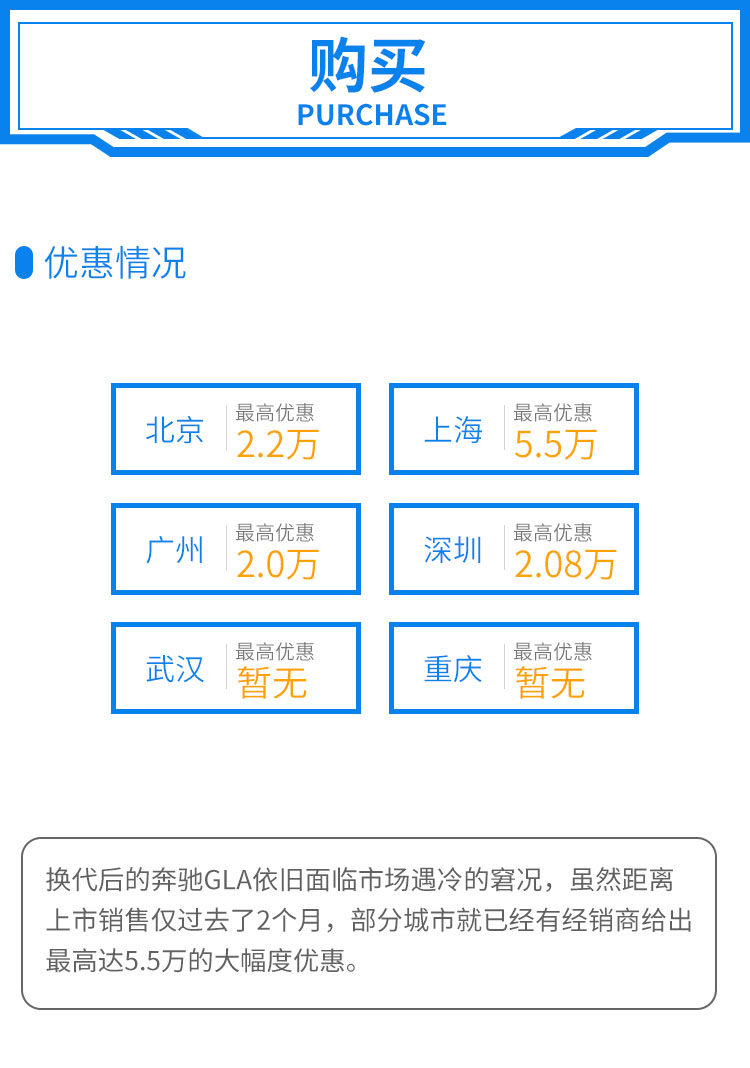 至于安全配置方面,第二代GLA在主动安全系统、疲劳驾驶提示、牵引力控制系统等主流核心配置方面还是做得比较到位的,但诸如车道偏离预警、盲区辅助等功能则未有配备。