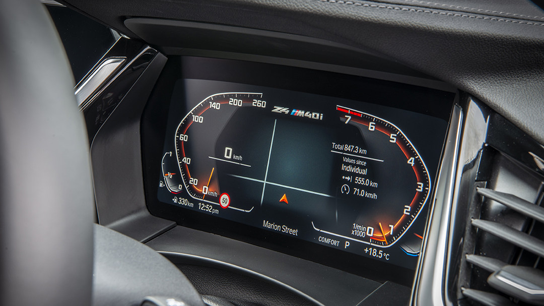 Supra的中控屏一半是指针,一半是液晶仪表盘,中置的仪表盘非常有战斗气息;而Z4的全液晶仪表盘不管UI还是视觉效果都更有科技感和豪华感。