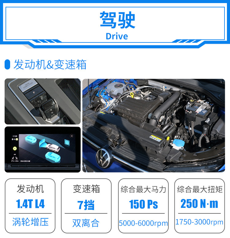 这套动力总成相信无需过多介绍,还是我们比较熟悉的1.4T+7DCT黄金动力,技术最先进的1.5T还得过一两年才能引进。
