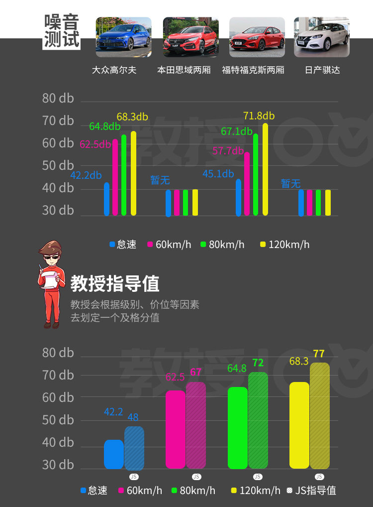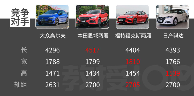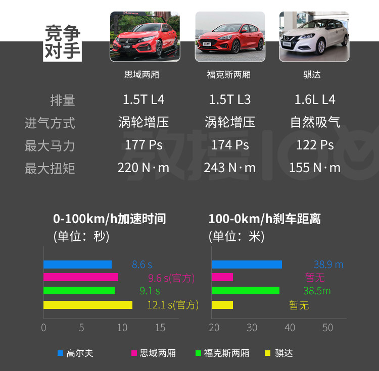 对比起竞品,高尔夫的优势还是比较明显的,竞品的发动机为了适应排放标准,动力输出做了妥协,当然思域两厢的数据是引用官方,实测可能会有不同;福克斯的1.5T账面数据比较好看,但整套动力总成会比较侧重燃油经济性,所以加速也不算突出,但制动距离会比高尔夫好一点,毕竟用上了米其林PS4轮胎。