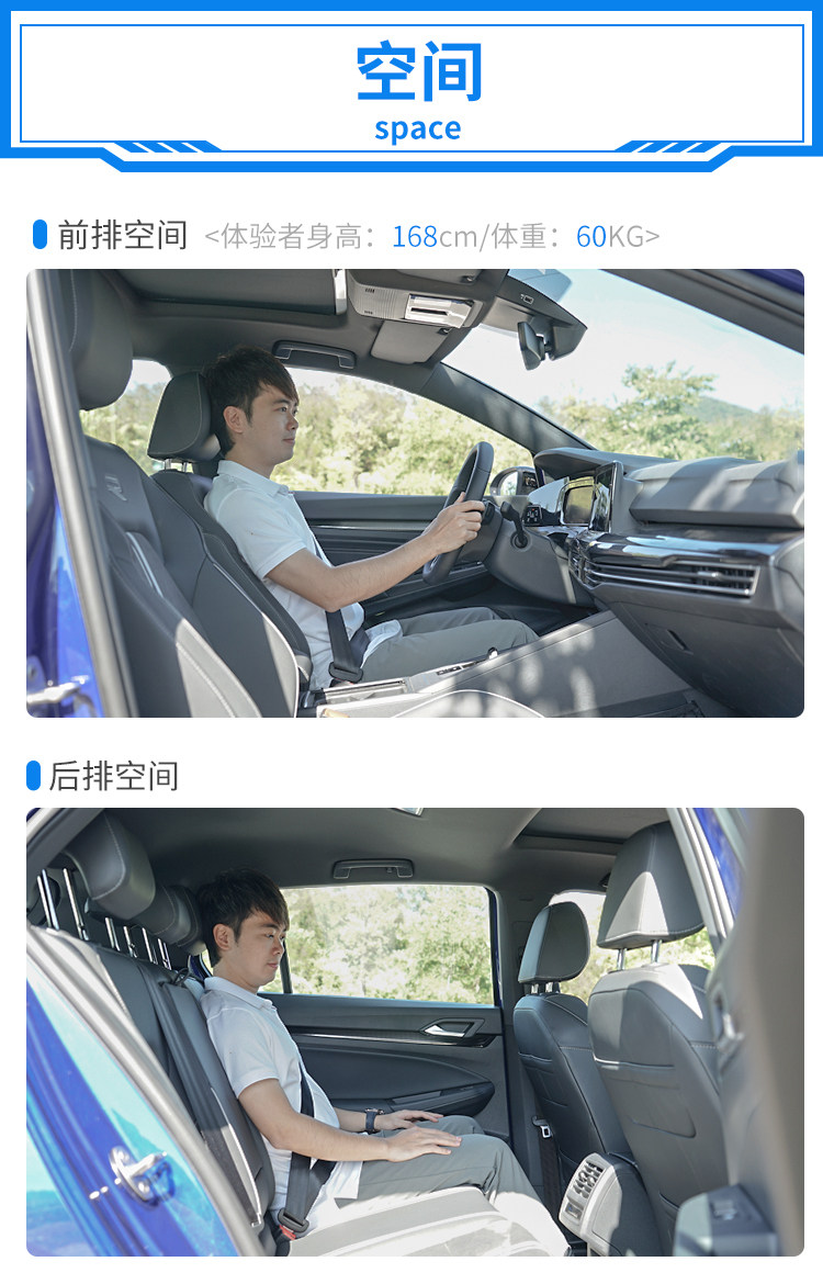 由于整体车身结构没有大变,八代高尔夫的乘坐空间体验基本上跟上一代差不多,座椅包裹性比较到位,尤其是前排,长度和宽度都比较常规尺寸大一点,整体表现虽然不算宽敞,但基本都够用。