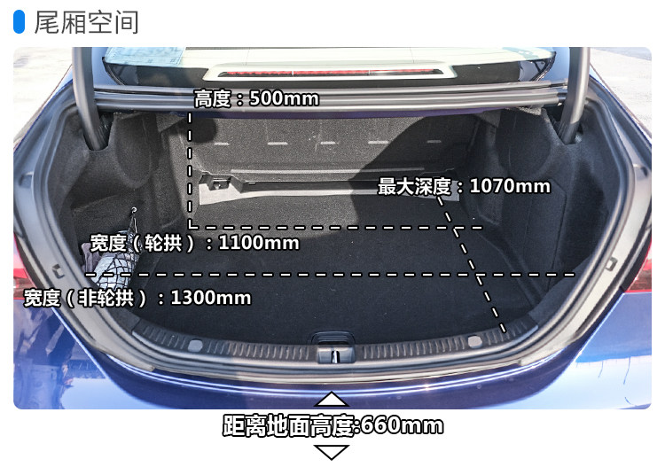 后备厢容积中规中矩,官方没有容积数据,我们测得大概有1米*1米*0.5米空间,容积大概为600升,另外后排不能放倒;尾厢平整度是优于宝马5系,但次于奥迪A6L。