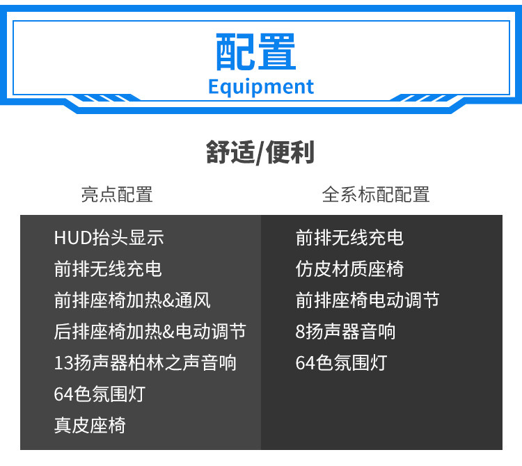 实测车型是2.0T的顶配版本,也选装了大部分配置,舒适性配置不管是坐、听、视、用都非常到位。