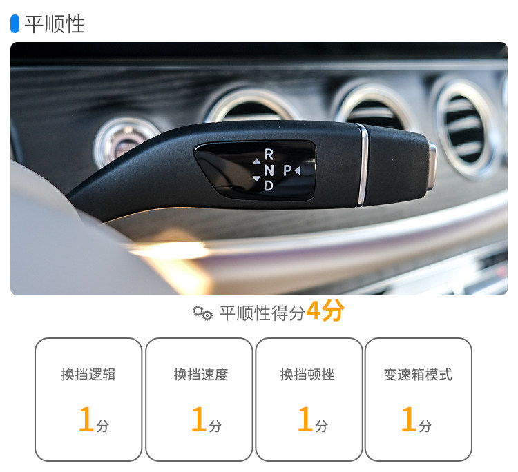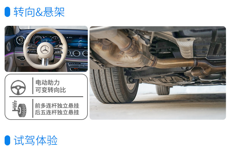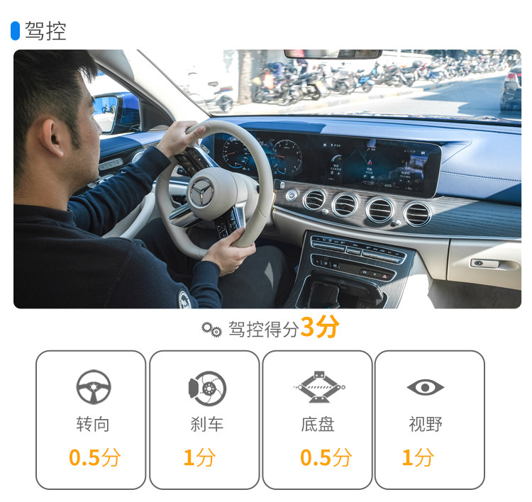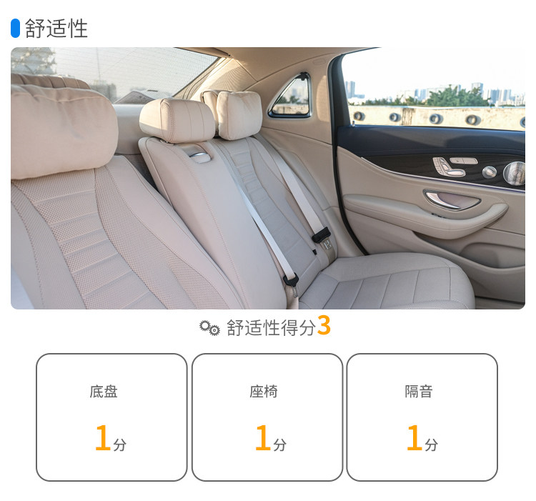奔驰E级的驾控方面强在动力性能和平顺性,但在驾驶操控和舒适性方面还有提升空间,乘坐舒适性是没问题的,只是隔音表现还差一点,如果能用上隔音玻璃可能会更好。