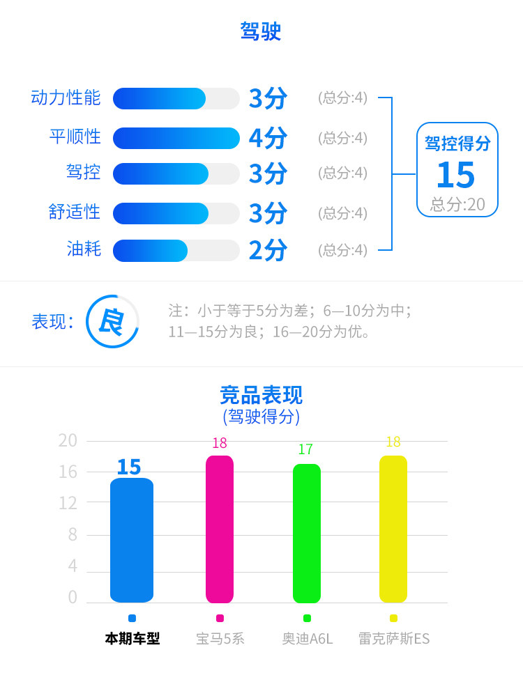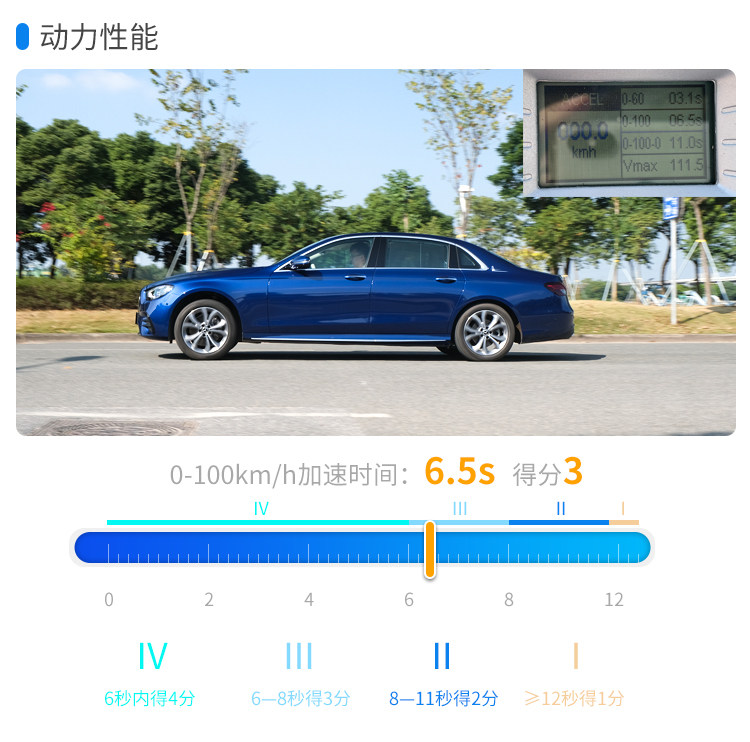 对比起我们实测过的车型,新E级的加速性能是最为出色,当然马力参数也是最高的,以0.2秒优势超过宝马5系,制动表现也排名第二,综合来看表现最优;不过总体来看,BBA三家的性能都足够出色。
