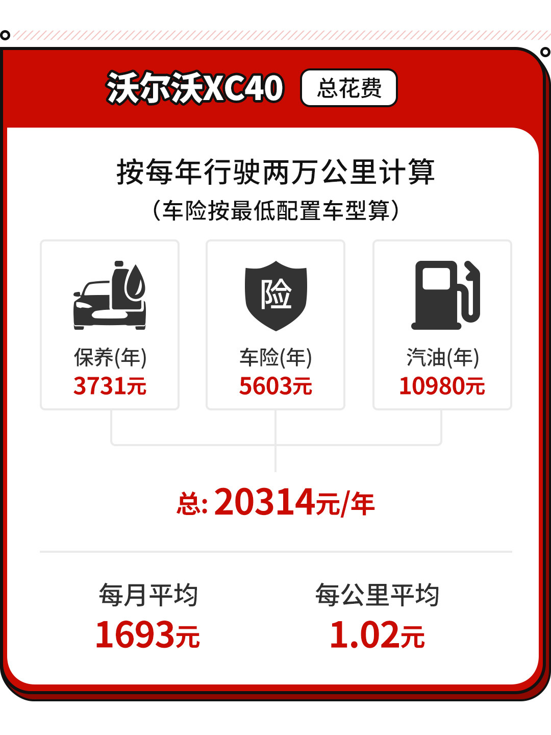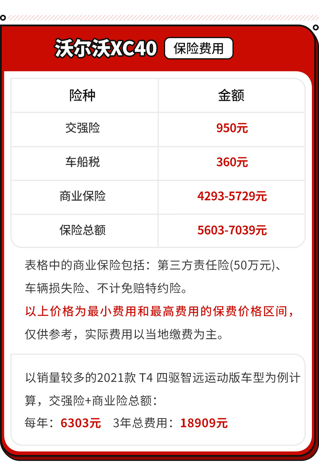在保险方面,XC40的表现只能说是中规中矩吧,平均6000一年的保险费用与大多数合资品牌处于同一水平线,还是可以让用户接受的。