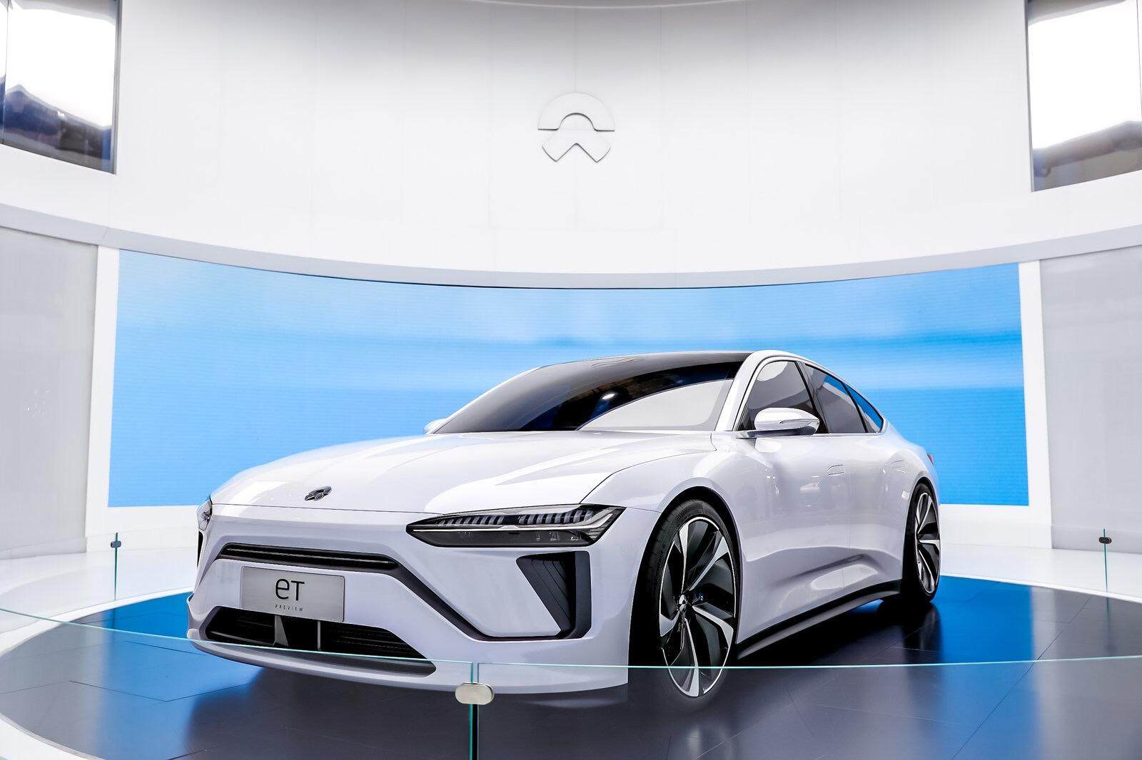 该车则是基于蔚来ET Concept概念车为原型打造而来,其概念车保持了家族式设计语言,扁平且修长的车身线条与ES8有些相似,分体式格栅依旧带来辨识度;而两侧的大灯组采用了矩阵式LED布局,内嵌一条金属带将其一分为二。