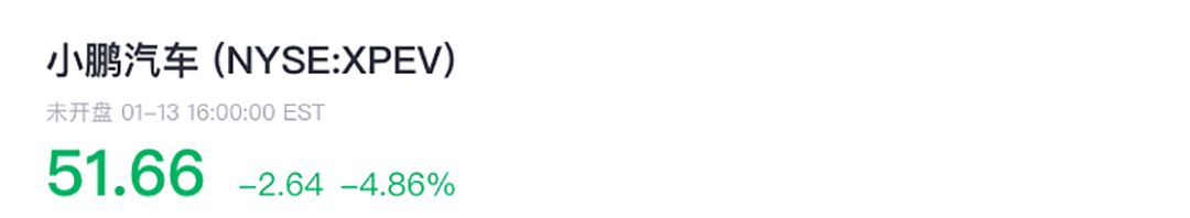 2020年8月27日小鹏汽车敲钟上市,上市发行价为15美元,截止到1月13日股价为51.66美元,上涨到原来的3.444倍!