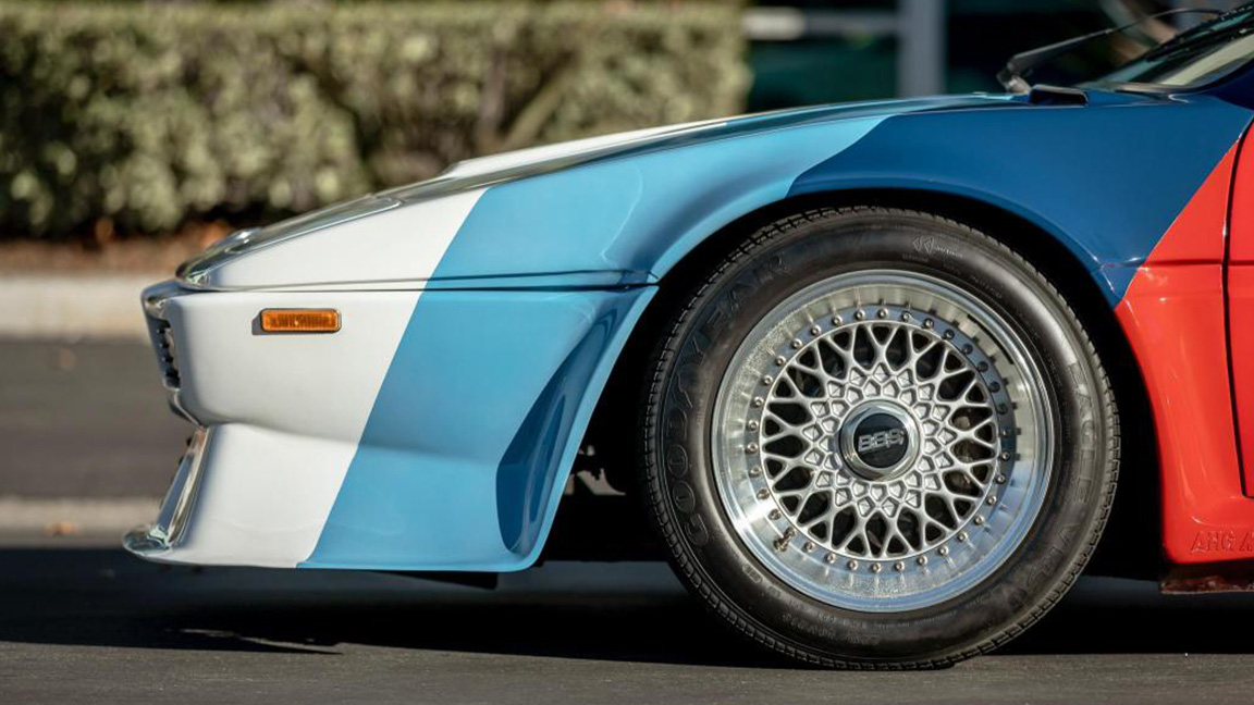 此外能发现,保罗·沃克这台宝马M1的车身还拥有三色线条涂装,其中蓝色代表了宝马的“家乡”——巴伐利亚的州旗颜色。