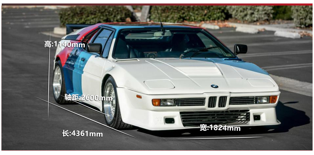 公路版宝马M1的长宽高分别为4361/1824/1140mm,轴距为2600mm,由于大量采用轻量化的管状结构和塑料车身,使得整车重量仅有1440公斤,另外其折叠式的“跳灯”、金属飞碟形轮圈等,如今看来都是非常经典的设计元素。
