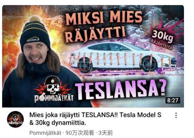 将特斯拉Model S拖至安全的地方,直接安置炸药,然后将车辆炸毁,以宣泄自身的不满。(说炸就炸,只能说有钱就可以任性)