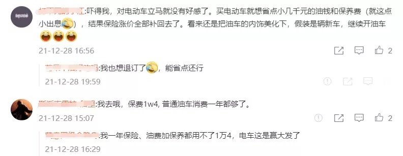 总体而言,纯电动车平时用着电费绝对“真香”,但到了交保险的日子那可是真贵!真贵!至于纯燃油车型和混合动力车型,之间的差距也还是在合理的范围里。(网友评价才是最真实的~)