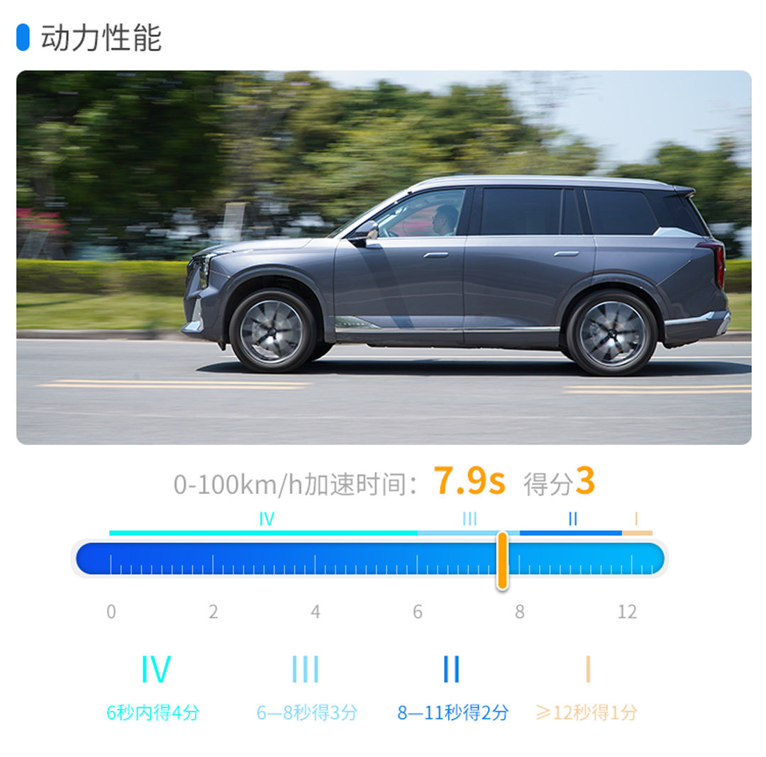 米其林PS4 SUV轮胎能将动力高效地压榨到地面上。因此,GS8取得7.9s的0-100km/h加速成绩和37.9m的100km/h-0刹车成绩也不奇怪了。这个成绩放在7座SUV里面,那真是独一档的存在。(汉兰达双擎版0-100km/h加速时间9.1s,100km/h-0刹车距离41.4m)