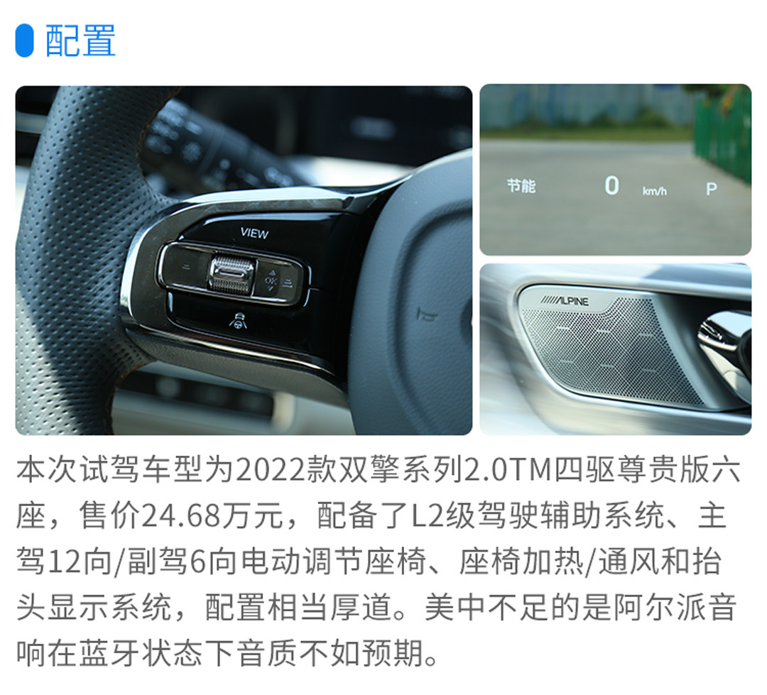 硬要在鸡蛋里挑骨头的话,我觉得顶配的阿尔派10喇叭音响算是一个,虽然是名牌音响,但蓝牙状态下浑浊的音质确实对不起它的标牌。建议广汽传祺有条件的话还是升级一个更好的蓝牙音频解码器,要不然这么好的阿尔派音响就浪费了。