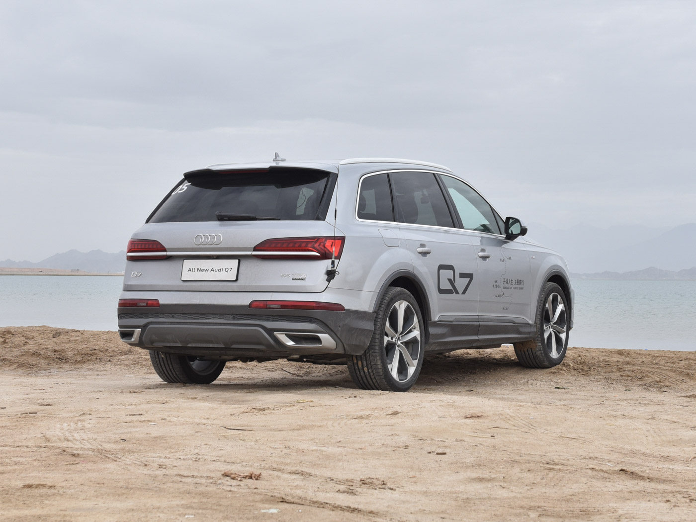 尾部奥迪Q7同样透露着大气的体态,银色镀铬装饰条横穿了两侧的尾灯组,整个尾部更偏向简洁,没有太多多余线条勾勒。