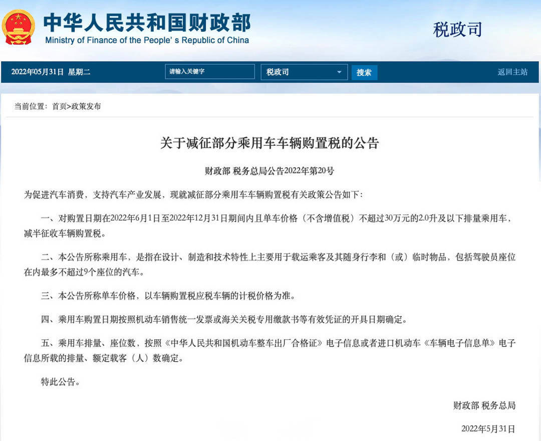 近日,为促进汽车消费以及支持汽车发展,国家财政部、税务总局发布一则重磅消息,它就是《关于减征部分乘用车车辆购置税》公告。此次覆盖的车型范围较为广泛,只要满足排量不超过2.0L、价格不超过30万以内、车内作为不超过9个等车型均可享受“购置税减半”优惠政策。